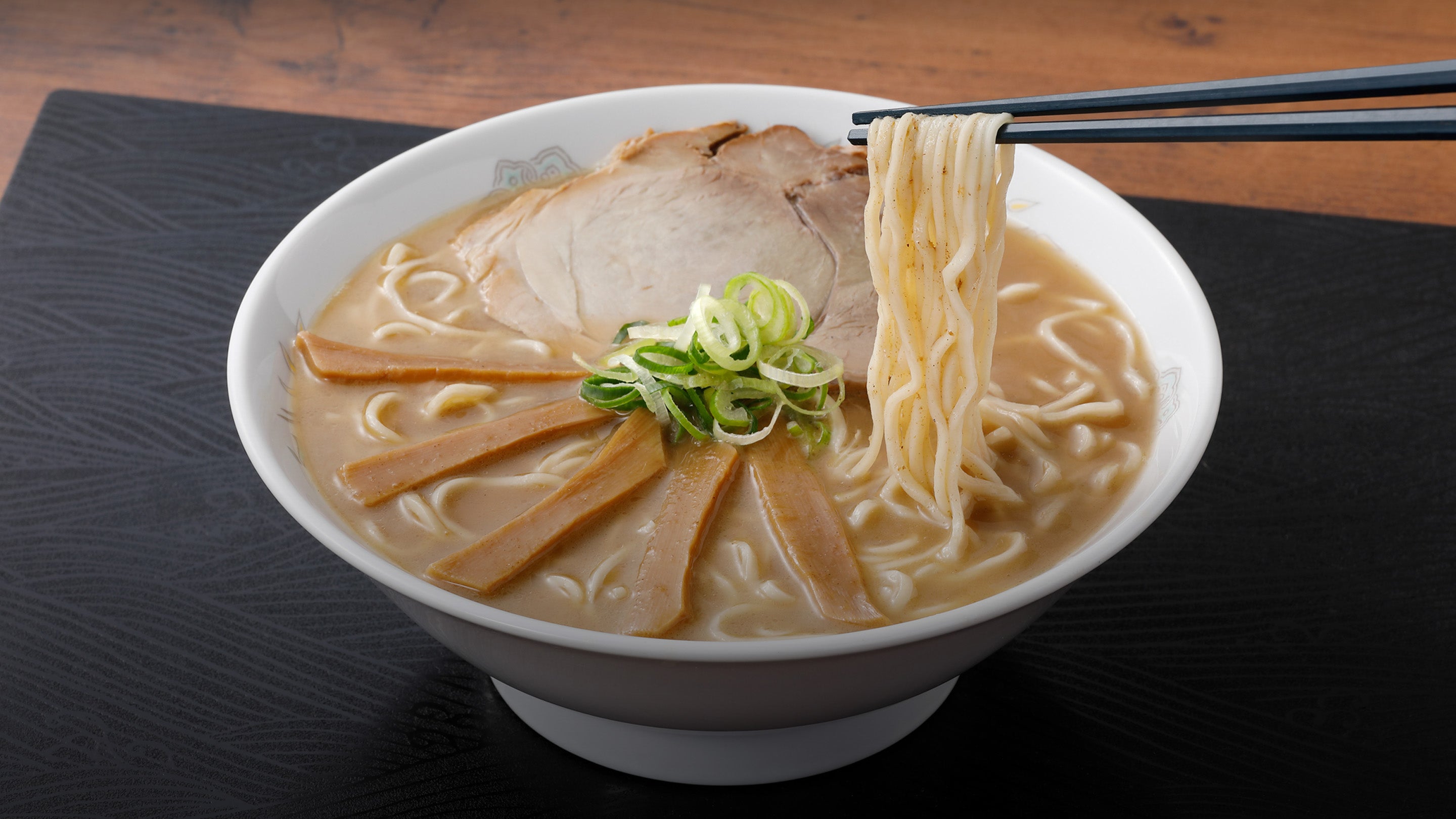 本社工場のある平川市で湧き出る岩木山の支流平川の地下水と、青森県産ブランド小麦「ネバリゴシ」を使って作り上げる、独特のつるつるとした美味しさを持つ津軽の麺。